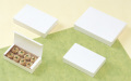 サイズ豊富な全22サイズ。電子レンジ対応の紙箱で白無地のワンタッチ式。平納品のため収納スペースも削減できます。